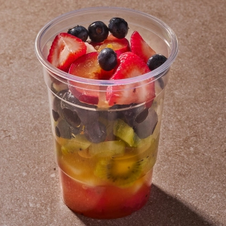 Preparada con frutas naturales de estación fileteadas y jugo de naranja.